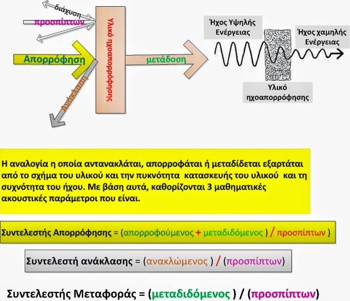 • Ο ( α )περιγράφει το λόγο της ακουστικής ενέργειας που απορροφά το υλικό προς την ακουστική ενέργεια που προσπίπτει στο υλικό.