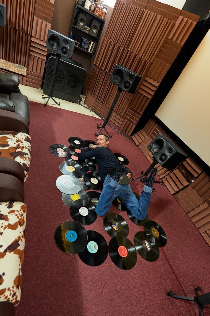 Το μαγικο χερι του Κωστα με φωτογραφισε ( με ρουχα δυστυχως ), στο πατωμα, φλογερο , στο κοκκινο χαλι, παρεα με τους αγαπημενους μου δισκους που κι αυτους ακουσαμε φυσικα στο συστημα του.