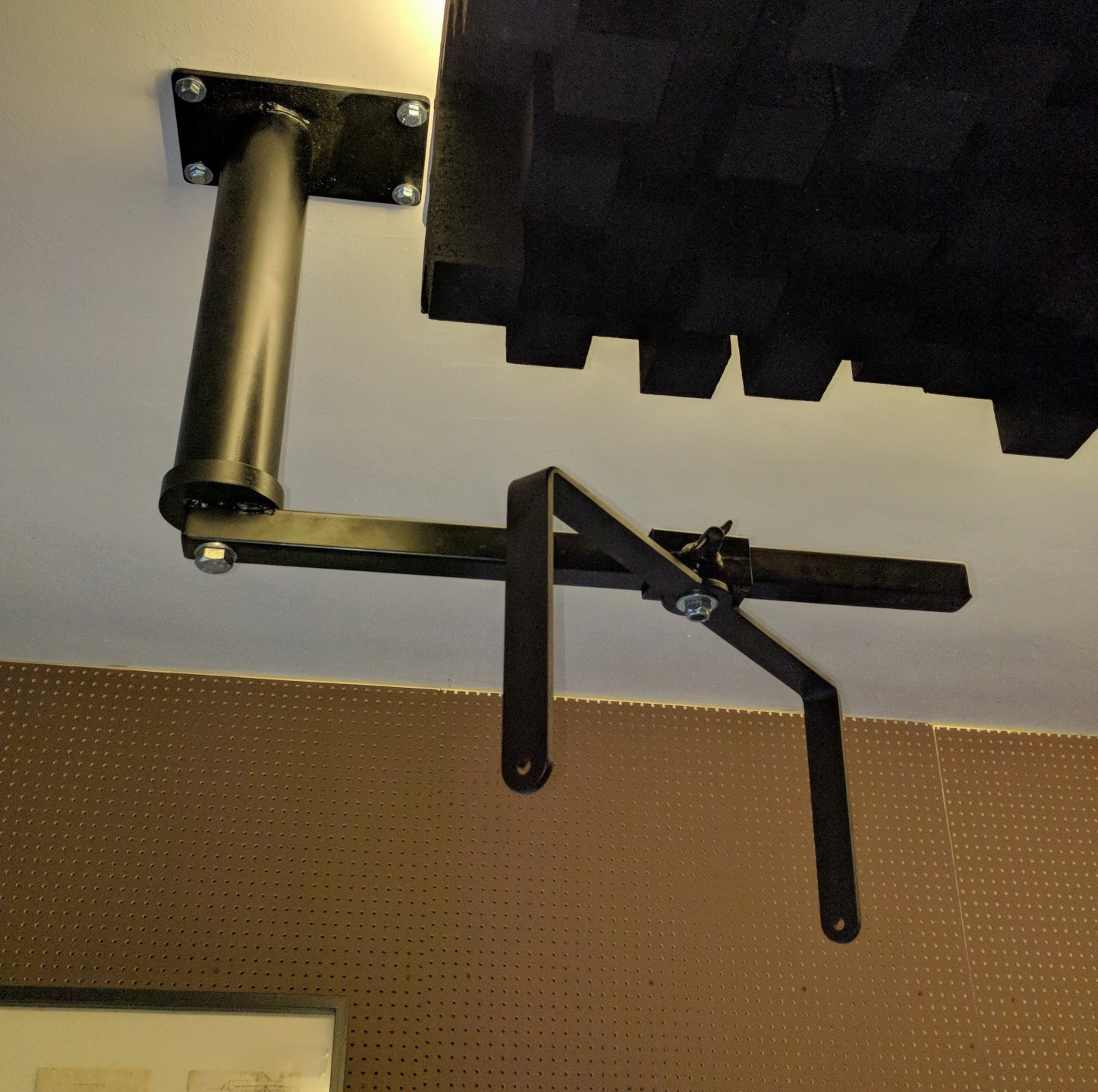 Το "Π" που πιάνει το ηχείο περιστρέφεται, και μετακινείται πάνω στον άξονα του οριζόντιου σίδερου, όπου σφίγγει με πεταλούδα.