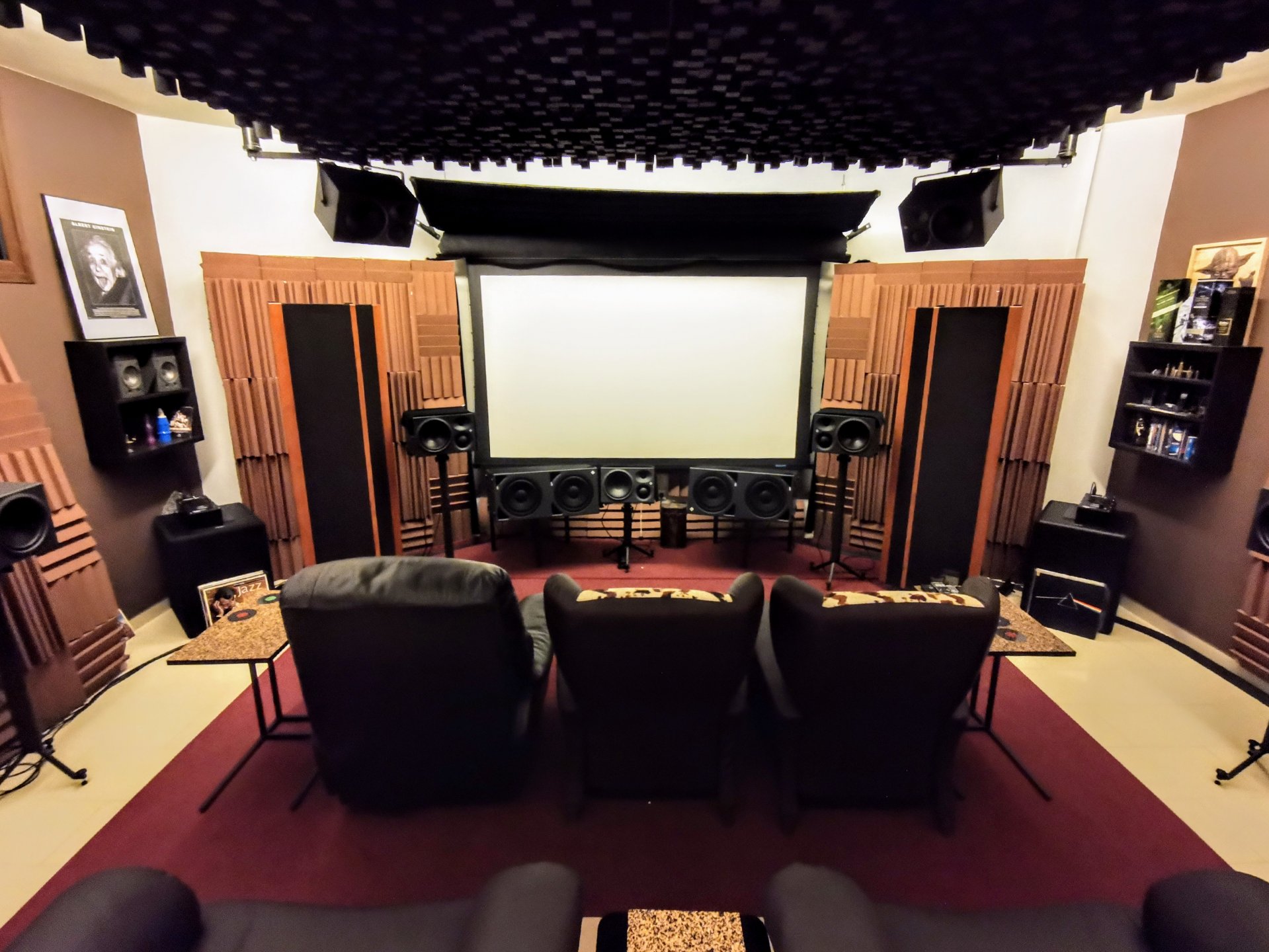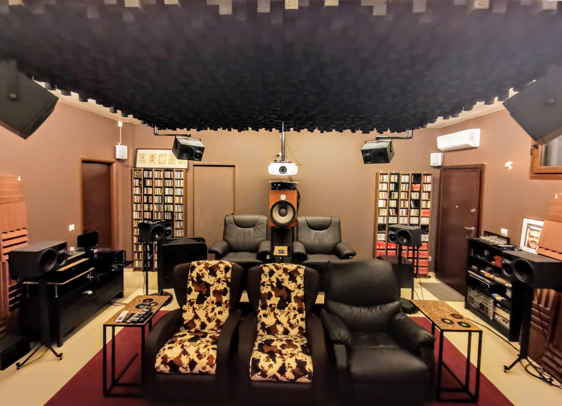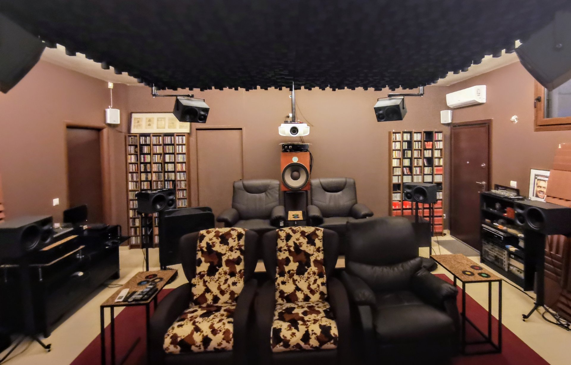 Σηκώθηκαν οι πίσω καναπέδες πιο ψηλά, πάνω σε ξύλινη βάση ύψους 27cm, η οποία θα γίνει μπασοπαγίδα και θα ντυθεί κανονικά με αυτή την σκούρη κόκκινη μοκέτα, όπως το υπόλοιπο δωμάτιο.