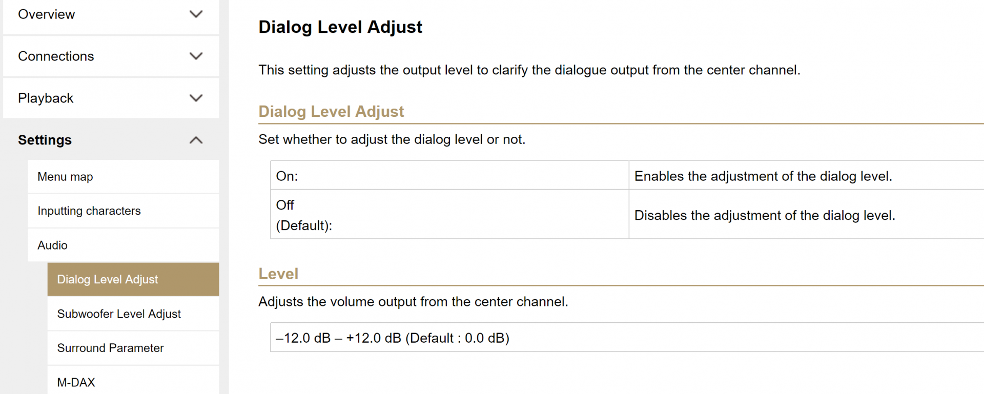 Μετά από αρκετό ψάξιμο και εφόσον δε μπορούσα να βρω μια εξήγηση βρήκα τι ήταν λάθος. Το dialogue level adjust όπως και το subwoofer level adjust έχουν 2 επιλογές. On - off και level σε db. για κάποιο λόγο το είχα αφήσει on αλλά χωρίς να προσθέσω db και νόμιζα ότι δεν είχε διαφορά. και μπερδεύτηκα γιατί στο manual δε λέει ότι κάνει κάτι η πρώτη επιλογή απλά on - off και ότι θα το ρύθμιζες από κάτω με τα db. αλλά τελικά με το που το κάνεις on και στα 0db να είναι προσθέτει ένταση στο κεντρικό.