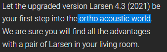 Μπορει να ειναι τα καλύτερα ηχεία στον κόσμο, δεν έχω αποψη αλλα προσωπικά σταμάτησα να διαβάζω μετά το παρακάτω:Πολύ σωστά ! αλλά η υπάρχουν εξαιρέσεις όπως η Larsen .....το εξηγούν στις οδηγίες τους ξεκάθαρα!