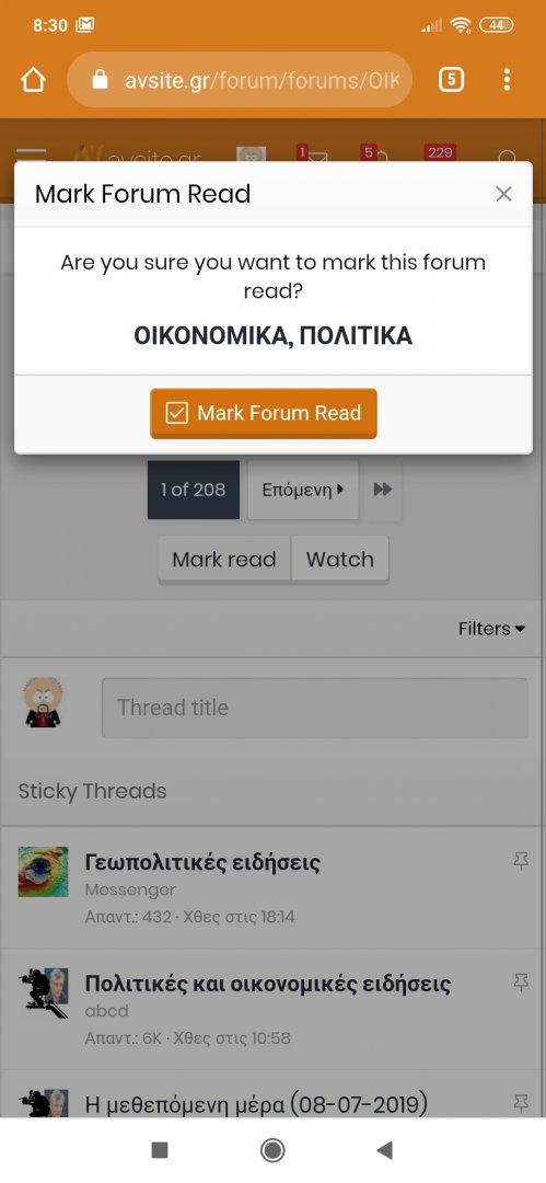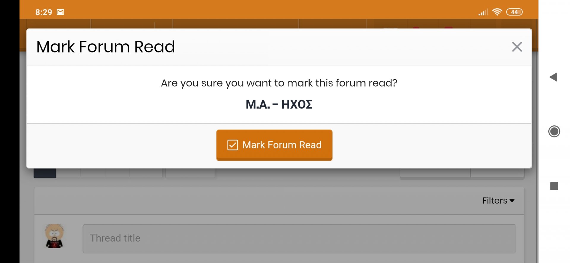 Επομένως, διαπιστώνω ότι το πρόβλημα εντοπίζεται μόνο στις διαστάσεις του αναδυόμενου παραθύρου "Mark as read" στο subforum των αγγελιών. Μόλις βρείτε χρόνο, θα πρότεινα να το φτιάξετε.![]()