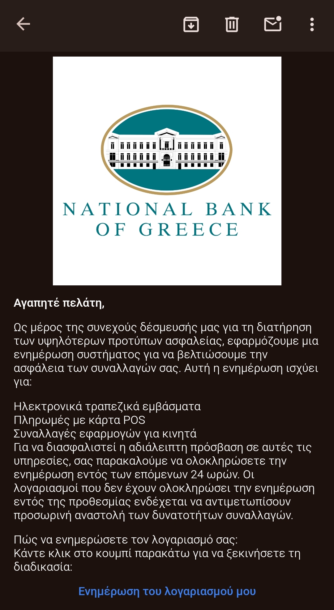 Είναι ντροπή να βρισκόμαστε στο 2025 και το mailing system ορισμένων τραπεζών να μή μπορεί να αποστέλλει προσωποποιημένα μηνύματα... Που προφανώς το συγκεκριμένο παραπάνω δε το έστειλε τράπεζα αλλα scammer, αλλά μια κι αναφέρθηκες στην AlphaBank, έδωσες καλή πάσα.