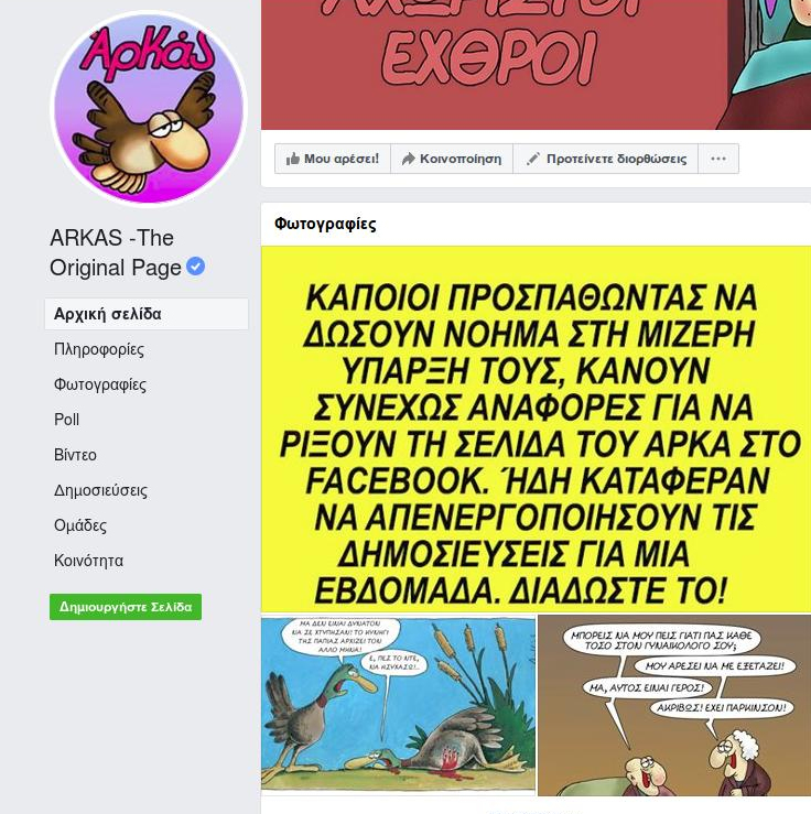 Μπλόκο στη σελίδα του Αρκά στο Facebook -Το σχόλιο του σκιτσογράφου