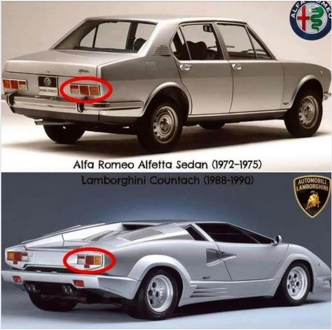 Ειδικά η Lamborghini, στη miura χρησιμοποίησε μπρος και πίσω φωτιστικά σώματα από το Fiat 850 Spider, στην Countach τα πίσω φώτα της Alfetta (τα εμπρός ήταν είτε από Alfetta είτε από 131), στην Diablo τα πίσω φώτα από έναν μαζικό κατασκευαστή που πουλάει τα φώτα του σε βιομηχανίες φορτηγών και λεωφορείων, ενώ τα εμπρός φώτα της Facelift έκδοσης ήταν από Nissan 300ZX. Mάλιστα ότι τα ίδια πίσω φώτα φορούσε και η McLaren F1, της οποίας οι καθρέπτες είναι από VW Koraddo.
