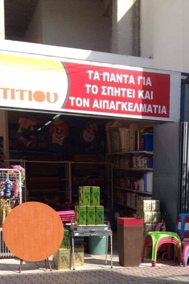 Είναι άκρως ρεαλιστικός κ ελπιδοφόρος ο συνειρμός που κάνεις φίλε gid!Δεδομένου ότι μαγαζιά πλέον ανοίγουν και οι μετανάστες, δε μου φαίνεται εντελώς απίθανο. Μετανάστης μαγαζάτορας παρήγγειλε πινακίδα σε.... μετανάστη κατασκευαστή πινακίδων.![]()