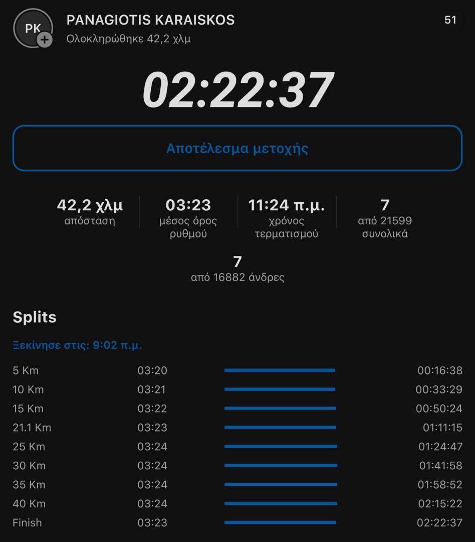 Είναι προφανές ότι πολλά πράγματα μπορούμε να καταφέρουμε όταν τα θέλουμε πολύ, τα βάζεις κάτω και κάνεις αυτό που πρέπει, ο χρόνος δεν είναι το παν, φυσικά ζω μια μικρή νιρβάνα που πέτυχα έναν τέτοιο χρόνο και τον θεωρώ εξαιρετικό για μια σειρά από λόγους, αλλά μεταξύ μας δεν ξέρω πόσο λιγότερο χαρούμενος θα ήμουν αν αλλά έφτανα σε 5 ώρες, δε θα μάθουμε ποτέ.