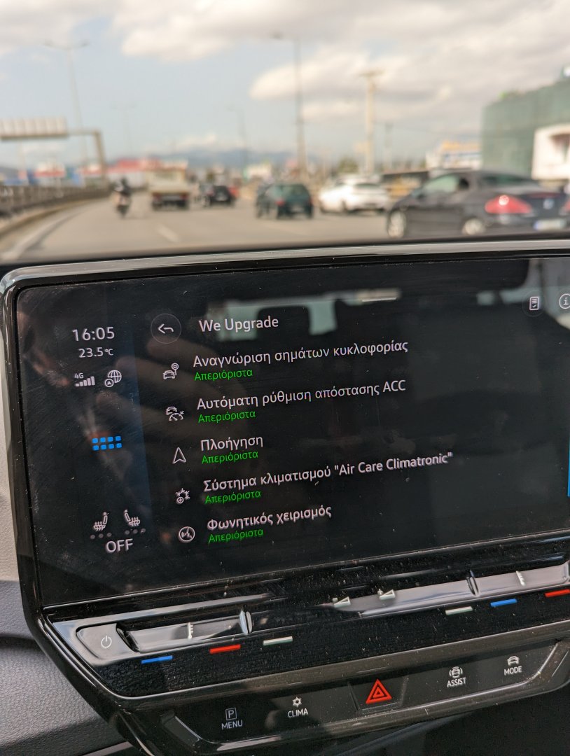 Την προηγούμενη Τετάρτη, άφησα το iD.3 στην αντιπροσωπεία (ΚΑΡΕΝΤΑ) για αναβάθμιση λογισμικού σε 3.2 και για κάτι ακόμα, άσχετο.