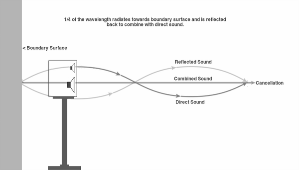 Όπως είναι προφανές από τη σχηματική παράσταση,η συχνότητα της οποίας το μισό μήκος κύματος ισούται με την απόσταση μεταξύ ακουστικού κέντρου στο ηχείο και το τοίχωμα πίσω από το ηχείο θα δέχεται τόνωση ΄στην απόκριση αντί ακύρωσης.