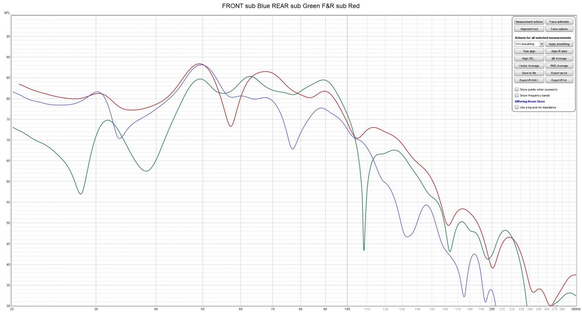 Μπορείς να βάλεις smoothing 1/6 οκτάβας για να φανεί πόσο ενοχλητική αναμένεται να είναι η υποχώρηση...Σημαντική υποχώρηση στου 100 κύκλους. To cross 80Hz 4th order για ηχεία και sub no smoothening. Στην μπλε είναι τα ηχεία full range χωρίς cross και τα sub cross 80Hz