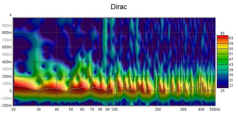 Η παλαιότερη εκδοχή χωρίς Dirac μου φαίνεται εξίσου crash and burn ως προς τη χρονική ευθυγράμμιση ενώ πρέπει κι εκεί να έχει εμφατικές νότες σε σχέση με τις υπόλοιπες. Για άμεση αντιπαράθεση της μορφής με Dirac βάλε παράσταση στη ζώνη 20-200 Hz.
