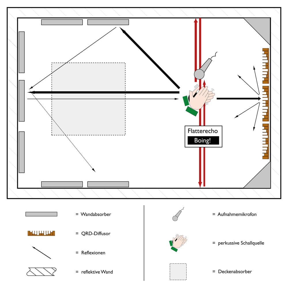 Ο στοχος ήταν να καταπολεμήσω φαινομενα flatterechos, να μειώσω τους χρόνους αντιχησης και να δημιουργήσω μια όσο το δυνατόν ομοιογενή ανάκλαση όπως φαίνεται στο σκίτσο.