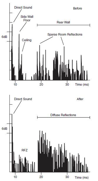 Υπάρχει σύγχυση ως προς το δεύτερο. Εχει να κάνει περισσότερο με το ποιο τμήμα του φάσματος εξετάζουμε.Πρακτικά σε μικρούς χώρους (όλοι οι οικιακοί) δεν γίνεται διάχυση, και δεν νοείται ύπαρξη χρόνων αντήχησης.