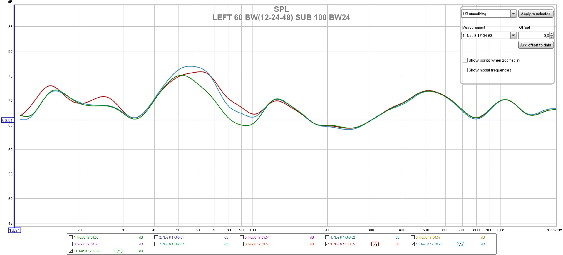 μετρα ολα τα ηχεια μετα οπως τα βγαζει.....να τα δουμε. ανα ηχειο με διαγραμμα ανα 10db και 1/6 smooth