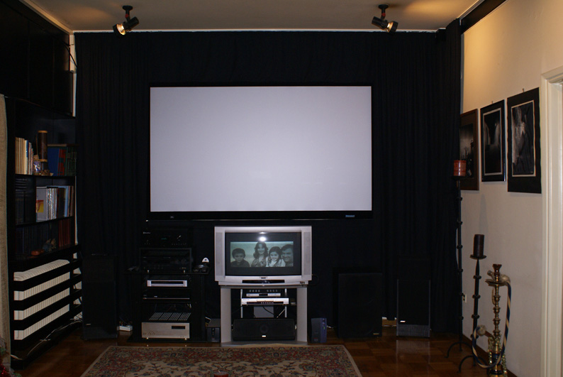 Βάγγο, συμφωνώ απολύτως με τα παραπάνω! Εδώ και πολύ καιρό θέλω να μασκάρω το κομμάτι του ταβανιού που εφάπτεται με την οθόνη με μαύρο βελούδο, αλλά το έτερον ήμισυ εκφράζει πεντακάθαρες απειλές κατά της σωματικής μου ακεραιότητας, οπότε… θέλω δεν θέλω υποχωρώ! wall_1