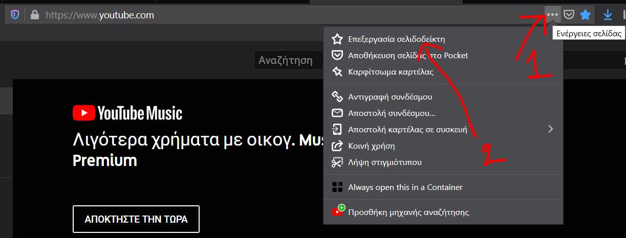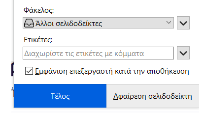πως ενεργοποιω το παράθυρο επεξεργασίας κατά την αποθήκευση σελιδοδεικτών;