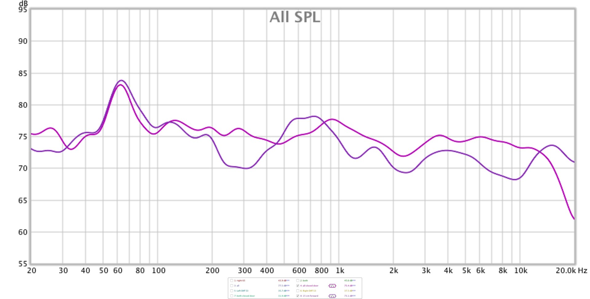 Οι δυο μετρησεις εχουν 15cm διαφορα μπρος -πισω την θεση ακροασης: (χωρις Dirac)