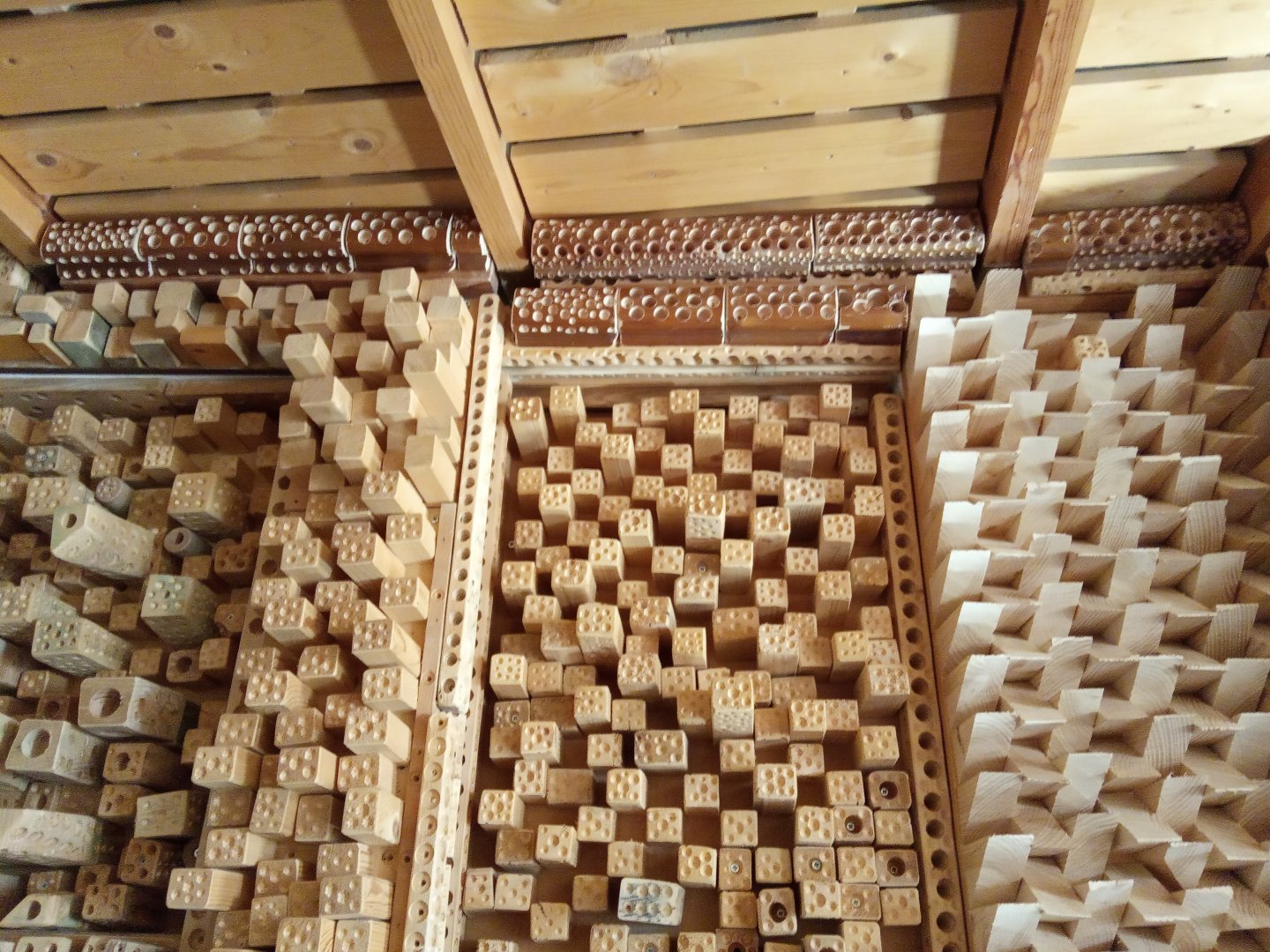 Βλέπω στις μπροστινές (εμφανείς) έδρες των ξυλακίων ένα σωρό τρούπες (ή να τίς πω γούβες?), από μικρούτσικες έως μεγαλούτσικες. Μη μού πεις ότι έκατσες και τις έκανες σε κάθε ξυλάκι.