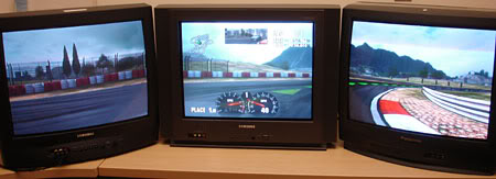 We know some folks are already rearranging their living rooms for online racing. If you’re racing with multiple screens, take a minute to snap a digital picture of your multi-screen set up. We’re setting up a message board for the Forza Motorsport Community site, and we’d like to see how you race. Now that you know about this option, we’ll also be looking for you on Xbox Live … looking to the left, the right, in front, and behind us