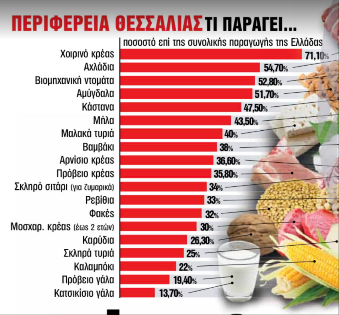 Ένας ενδεικτικός πίνακας της συμβολής της Θεσσαλίας στην παραγωγή. Δεν σημαίνει ότι θα έχουμε πρόβλημα σε όλα αυτά αλλά καταλαβαίνουμε ότι θα επηρεαστούμε συνολικά.