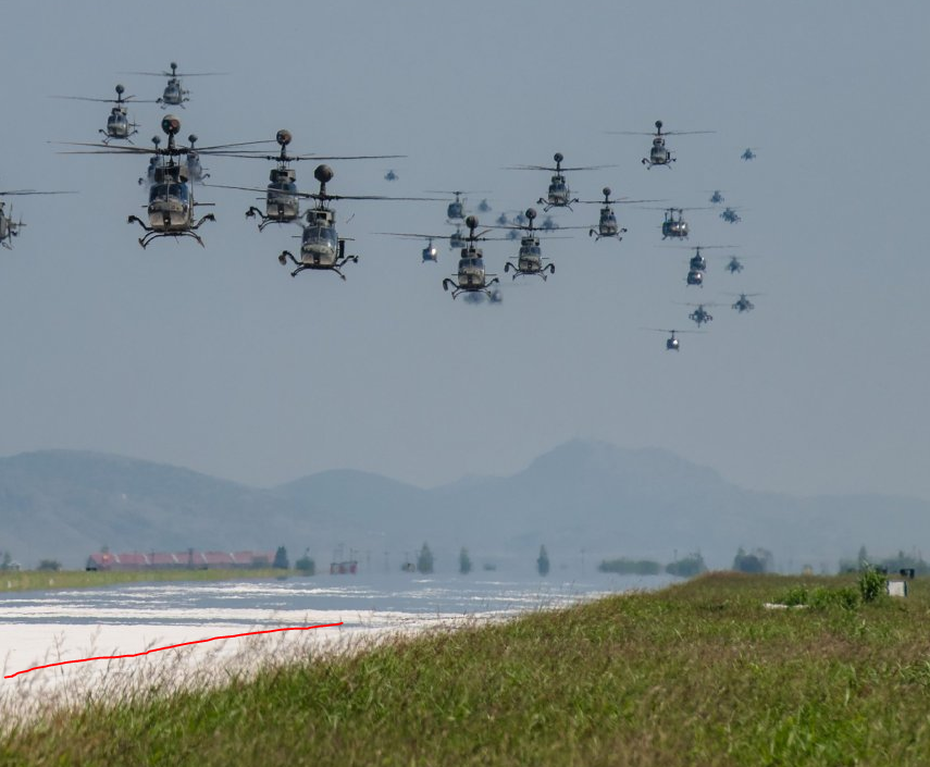 Στο άσπρο κομμάτι που θεωρείς πως είναι χιονισμένο, ξεκάθαρα φαίνεται η λευκή γραμμή του διαδρόμου (λίγο κάτω από την κόκκινη που έβαλα). Πως γίνεται να είναι καλυμμένο με χιόνι αλλά σε όλο το μήκος να ξεχωρίζει η λευκή γραμμή;