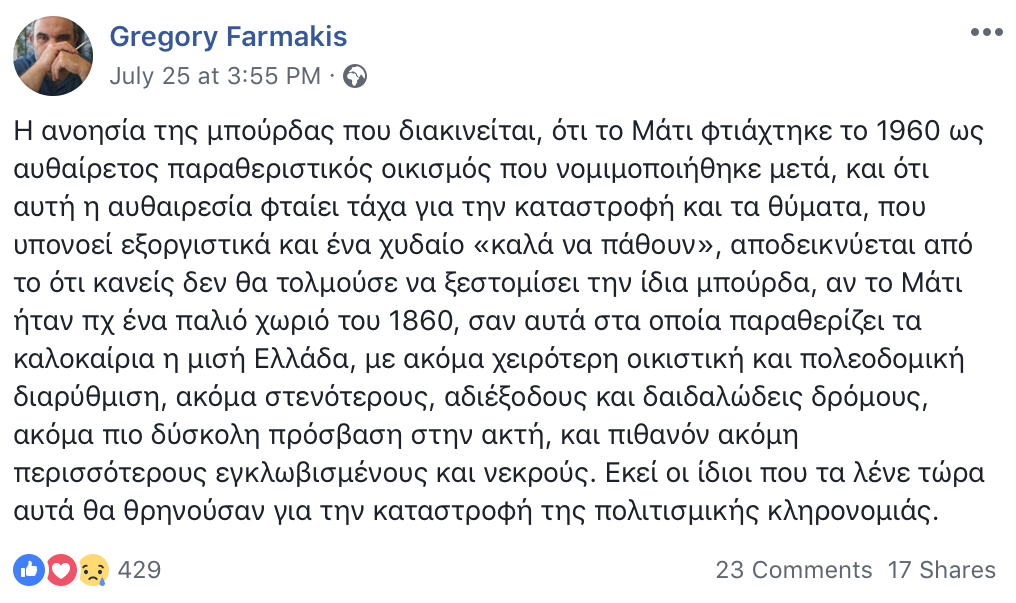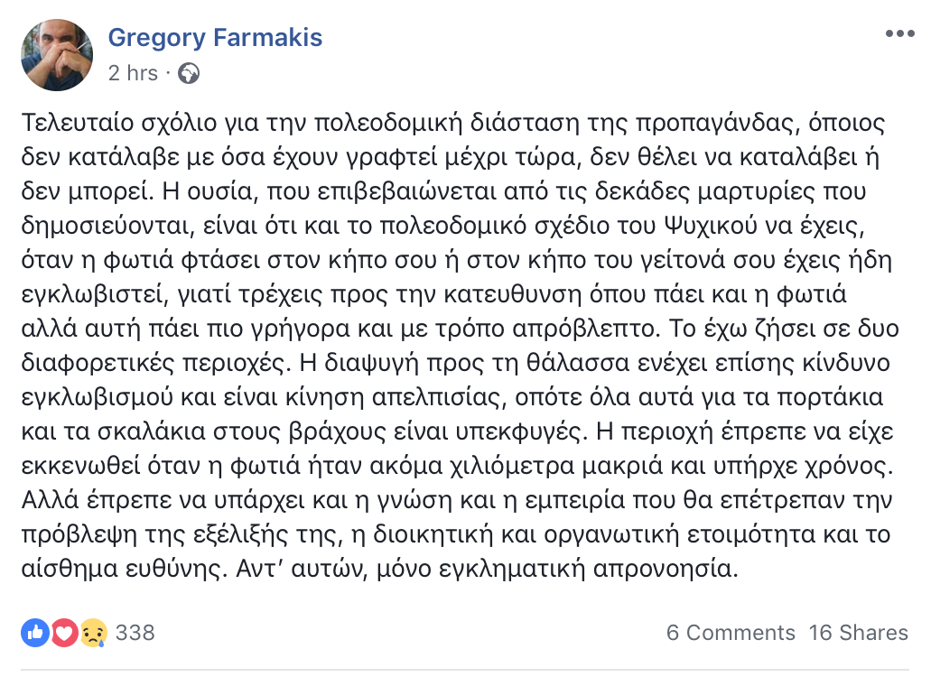 Υ.Γ. Το τί γράφει κάποιος που έχει περιουσία στη περιοχή, λίγο με απασχολεί. Περιμένω τα πορίσματα.