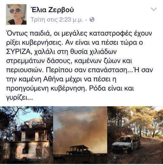 Η Έλια είναι φανατική Τζημερική και πιθανόν ακόμα πιο παλαβή από τον μέντορά της. Οποιοσδήποτε κάνει καθημερινά πολλαπλές πολιτικές αναρτήσεις στο fb θα γράψει κι αρκετές μπαρούφες.