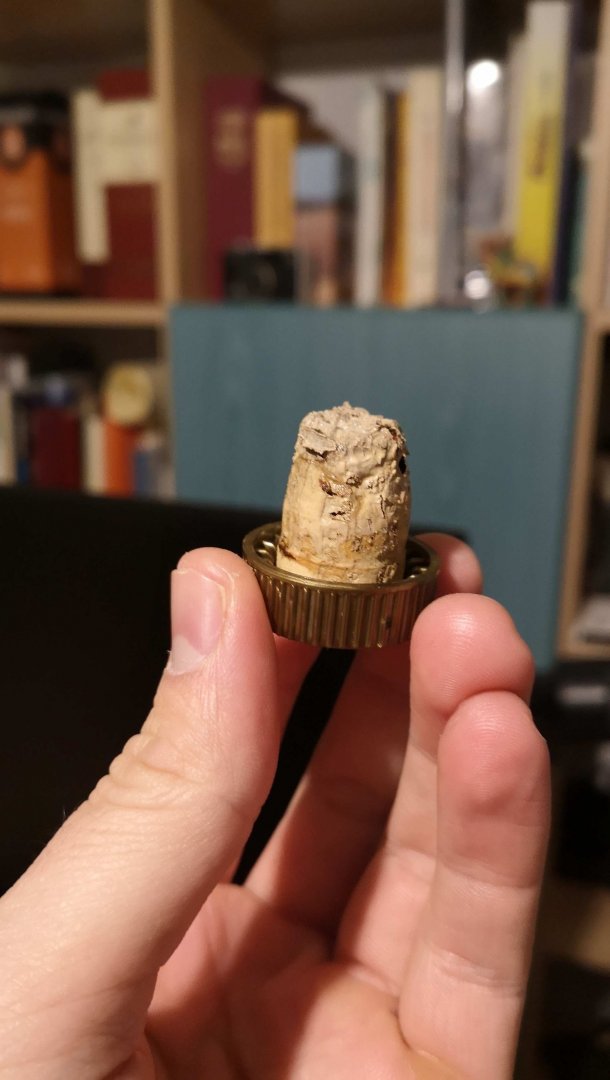 Δεν ξέρω τι έγινε, μην σας τύχει. Η στάθμη είχε πέσει κάποια εκατοστά και ο φελλός είχε διαβρωθεί. Ωστοσο το ποτό ποτέ δεν κάθισε στο πλάι...
