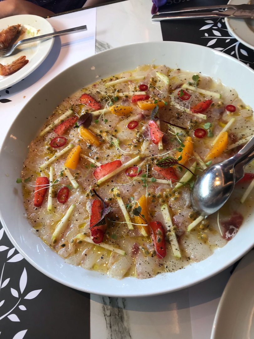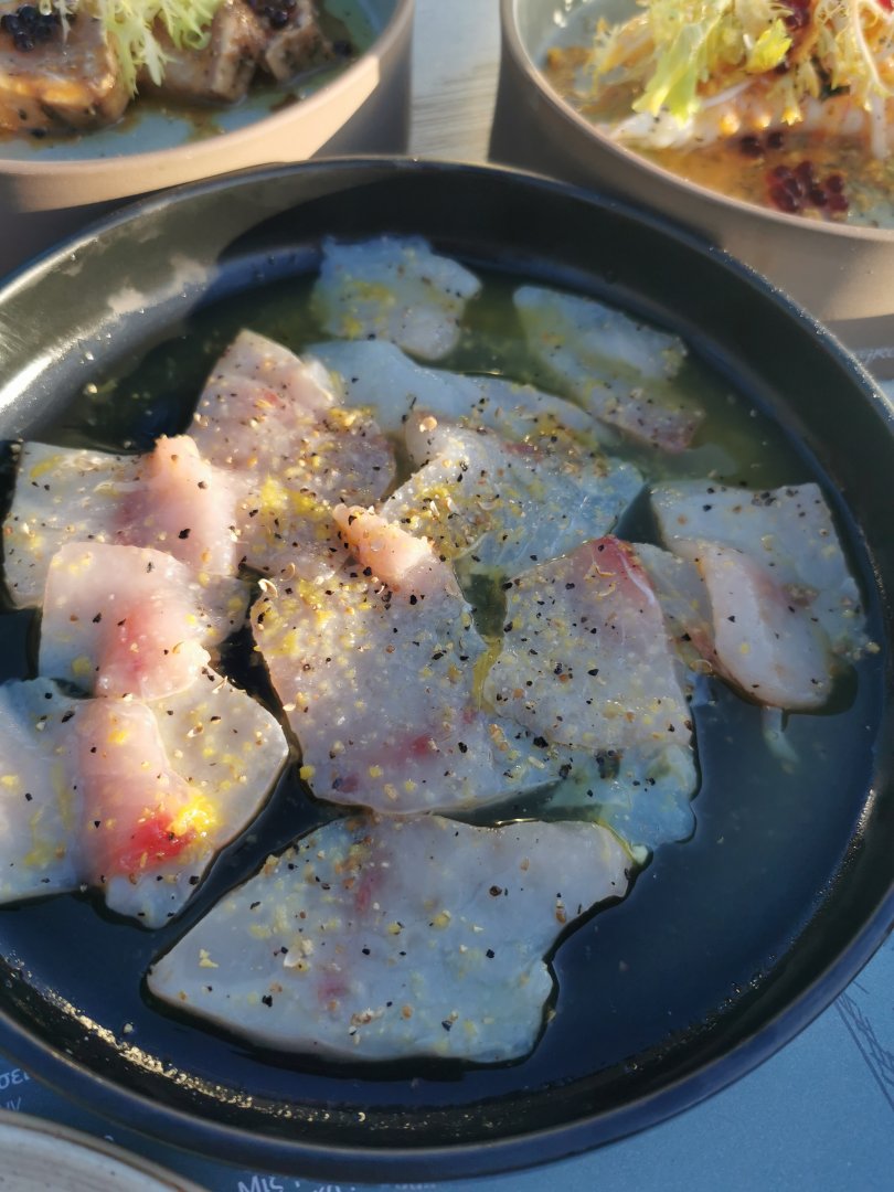 Φαγκρί καρπάτσιο (ήταν μεγαλούτσικο, μια πιατέλα και ένα πιάτο)