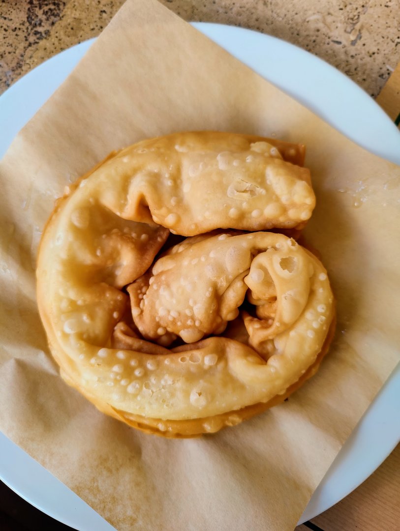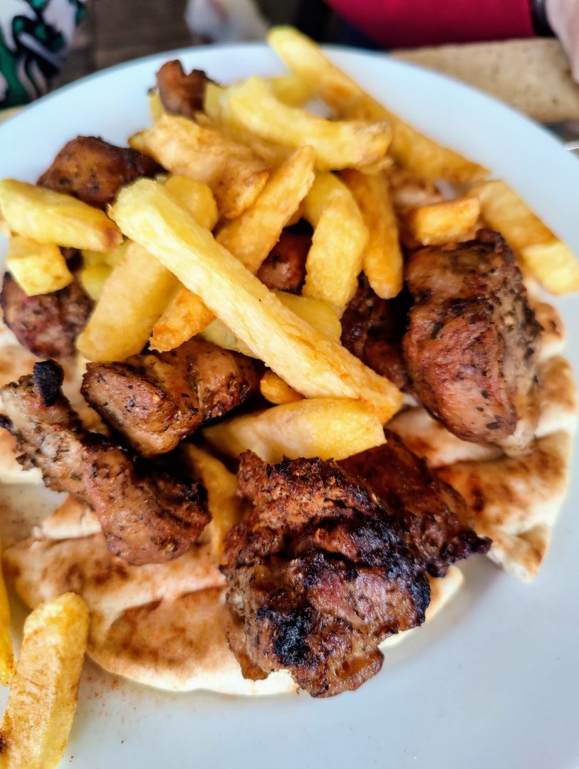Σαγανάκι,στριφτή τυρόπιτα στο τηγάνι (προδίδεται από την εμφάνιση και τη χάρτινη ΄΄σερβιέτα΄΄),πατάτες τηγανισμένες ως γαρνιτούρα στο κοντοσούβλι...Επιλογές κάθε άλλο παρά ΄΄πολιτικώς ορθόδοξες΄΄ με γνώμονα τις επικείμενες ελλείψεις σε σπορέλαια...:p
