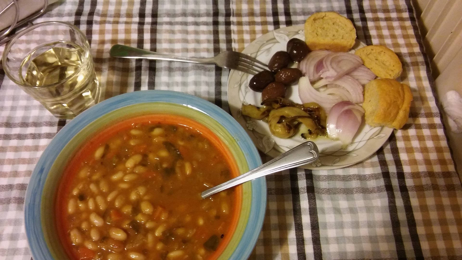 Φασολάδα με τα απαραίτητα συνοδευτικά.