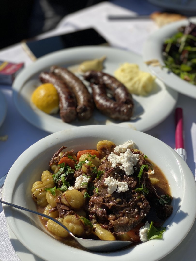 Τσιπούρα καρπάτσιο, ριζότο με χτένια και σολωμό, κιουνεφέ για γλυκό