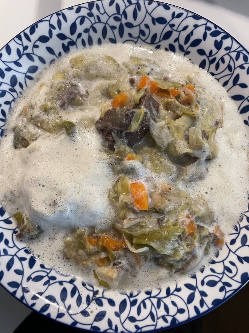 ωραιος αφρος στο αυγολεμονο!Πρασσοσελινο, καρότα με μοσχάρι κ αυγολεμονο