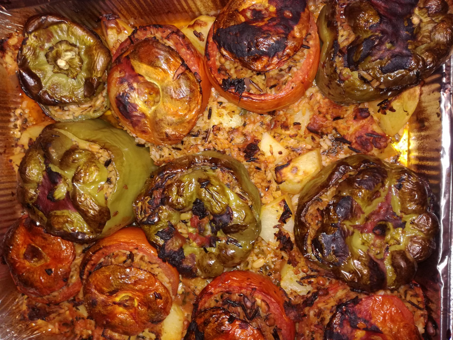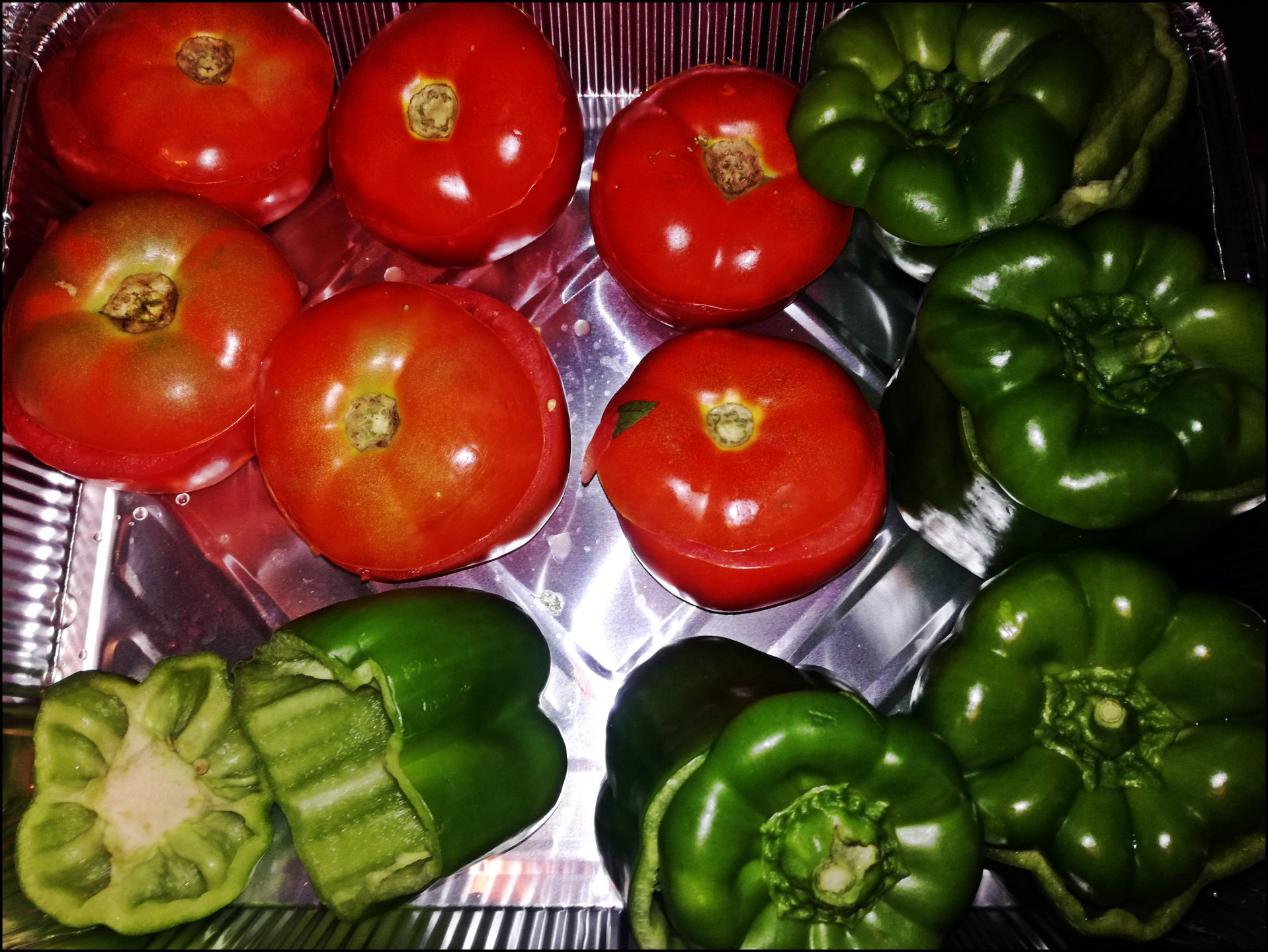 Μια απλή ντοματοσαλάτα, μια φέτα κεφαλοτύρι σαγανάκι και μια τηγανιά καυτερές πιπεριές σε λαδόξυδο.