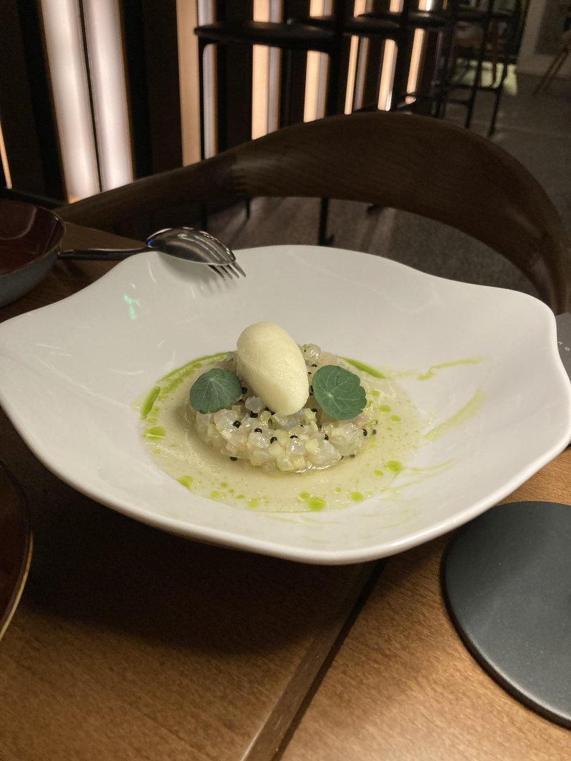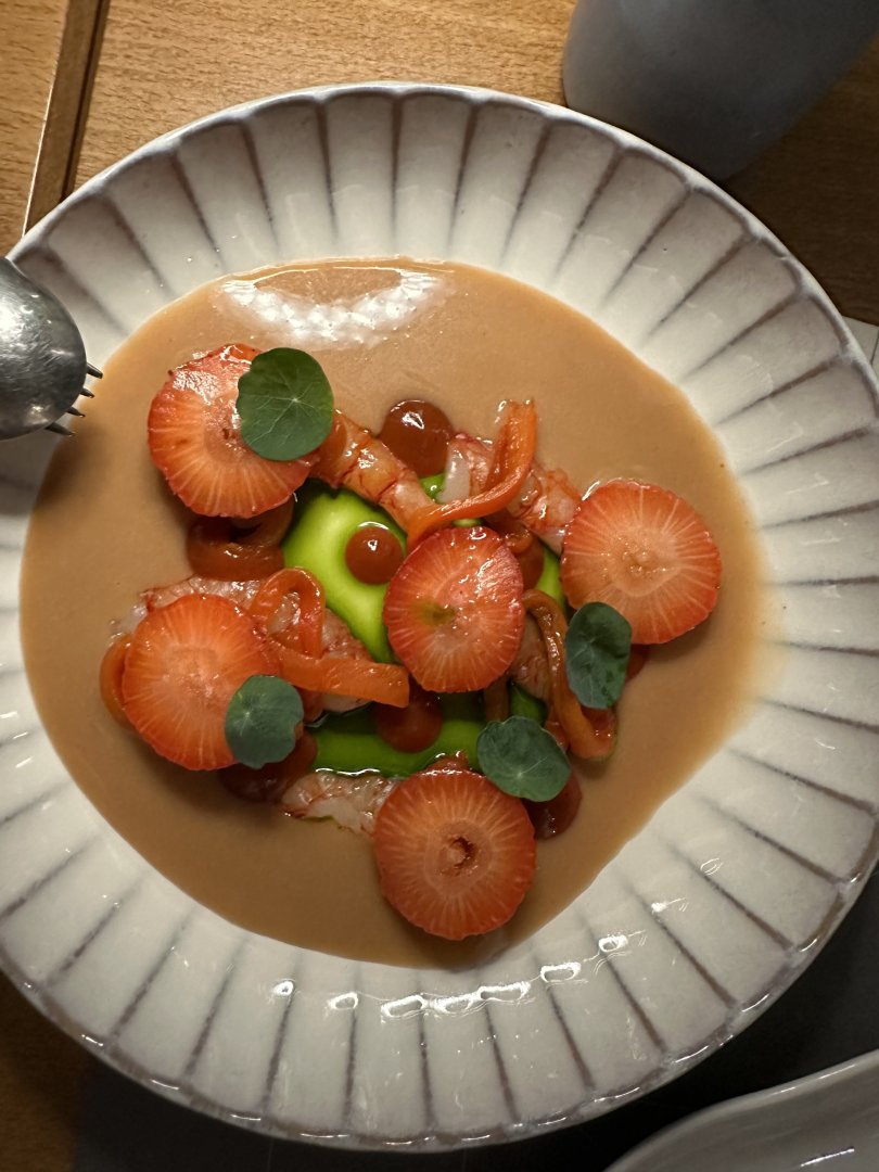 Ελαφριά:Καλαμπόκι τηγανητό με τσίλι και λάιμ, λαβράκι ταρτάρ με σορμπέ λεμόνι, και γαρίδες με φράουλες