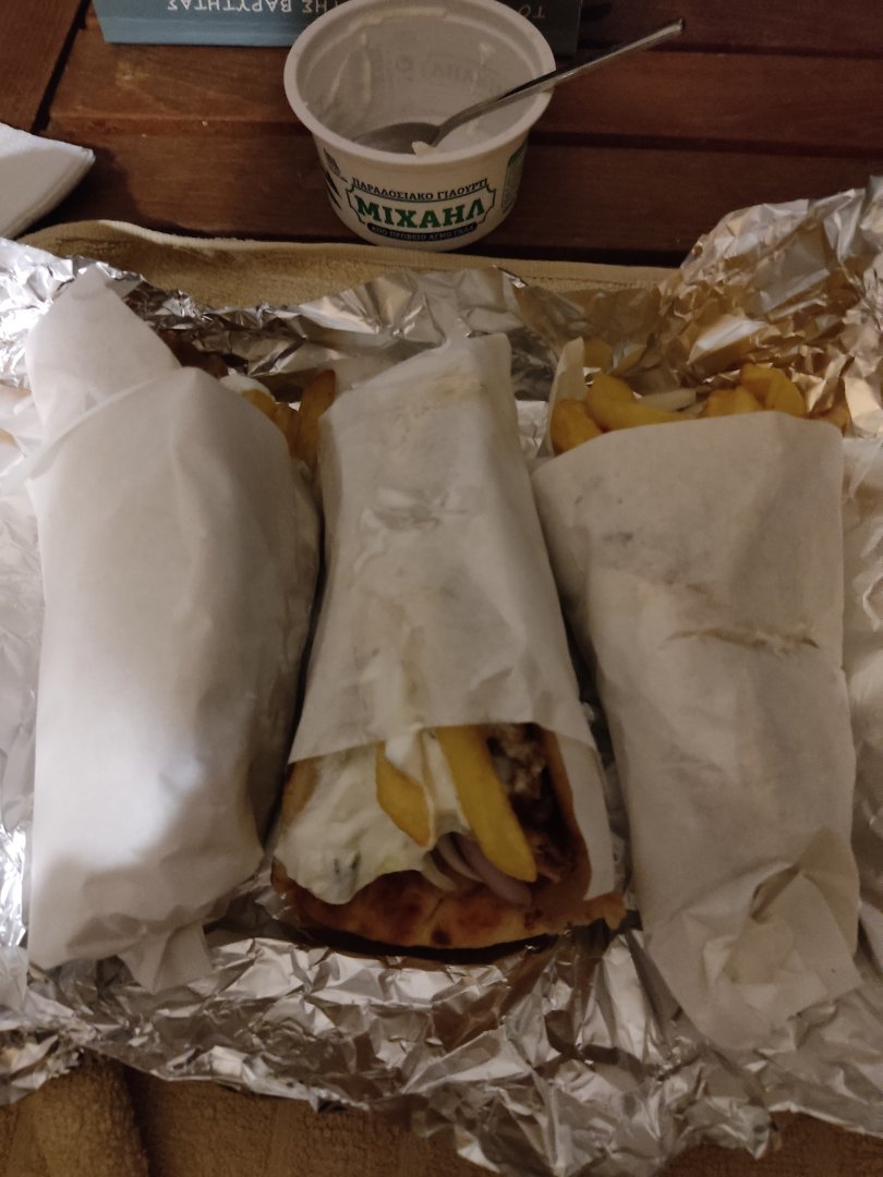 Γύρο κοτόπουλο με υλικά χοιρινού, τελικά ήταν και πολύ χορταστικά, το ένα έφαγα και τη σαλάτα, το άλλο για το βράδυ