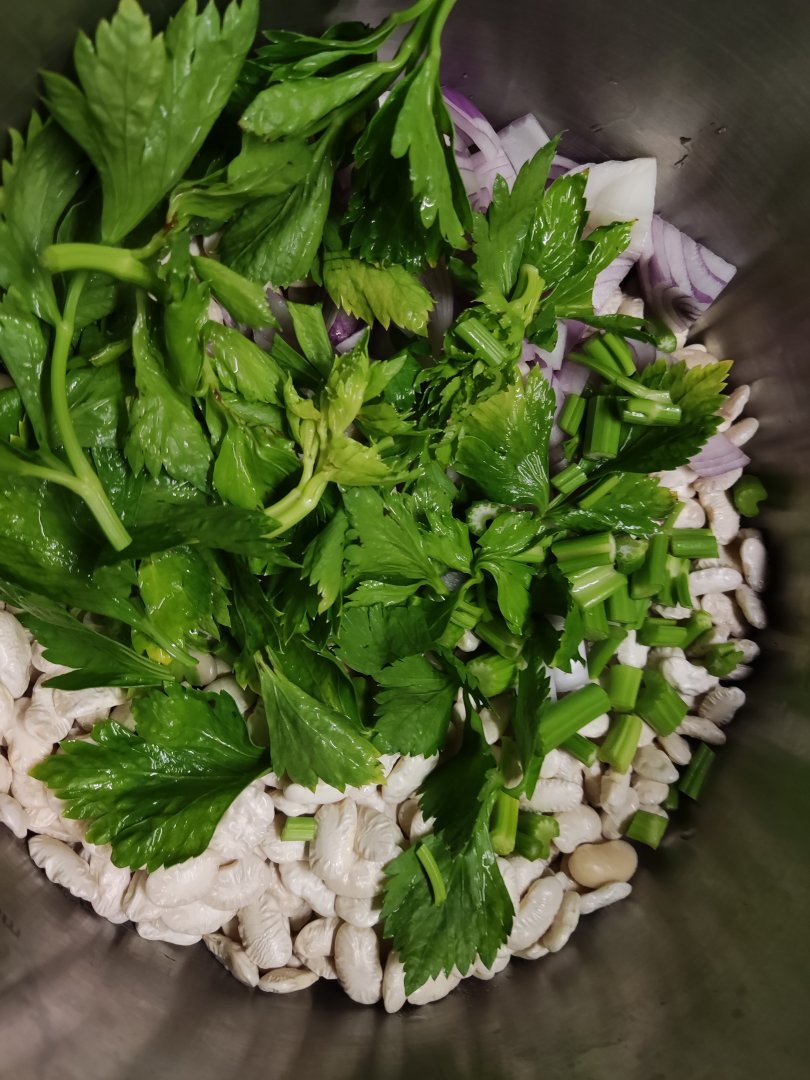 Η χαρά μου προέρχεται από τη σπάνια εύρεση τόσων πολλών κλαδιών σέλινου: Συνήθως οι σελινοριζες που πωλούνται είναι γυμνές.