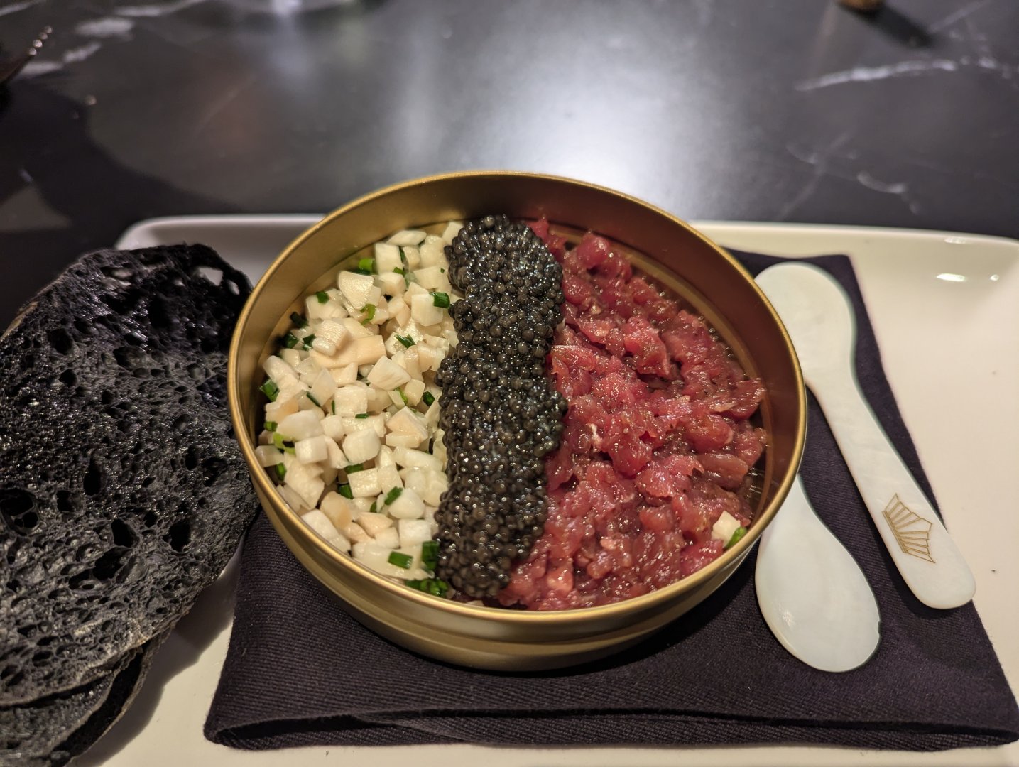 Απίθανη η υφή και η γεύση του μανιταριού, το χαβιάρι υπεράνω κριτικής (έχουν εξειδίκευση οι άνθρωποι) και το κρέας black Angus 30 ημερών ωρίμανσης, γλυκό κουταλιού.