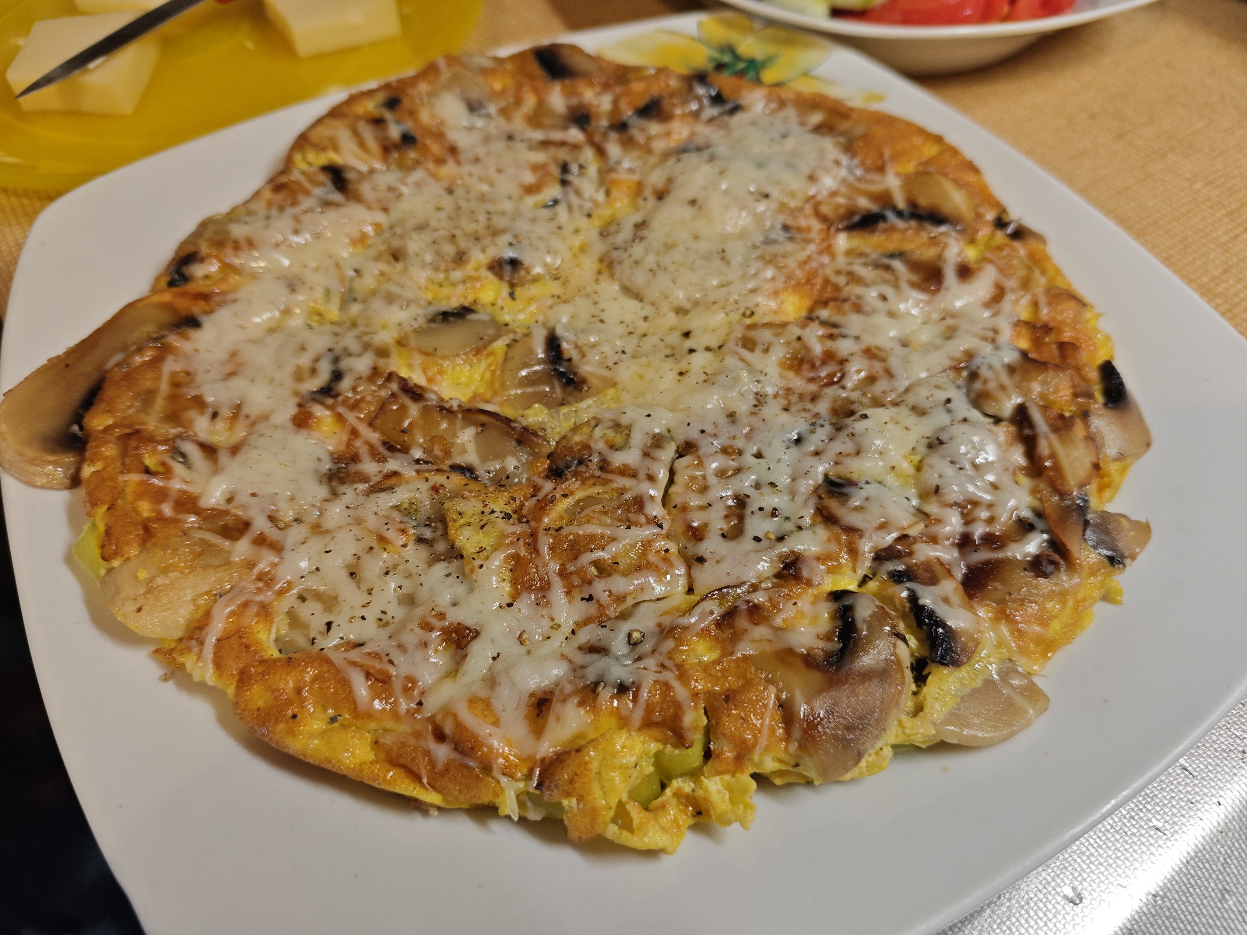 Έβαλα μαναχά μανιτάρια και πιπεριά, άσε που άμα έχει γεύση το αυγό δεν χρειάζεται πολλά μαντζούνια για να έχει γεύση ως σύνολο η ομελέτα.