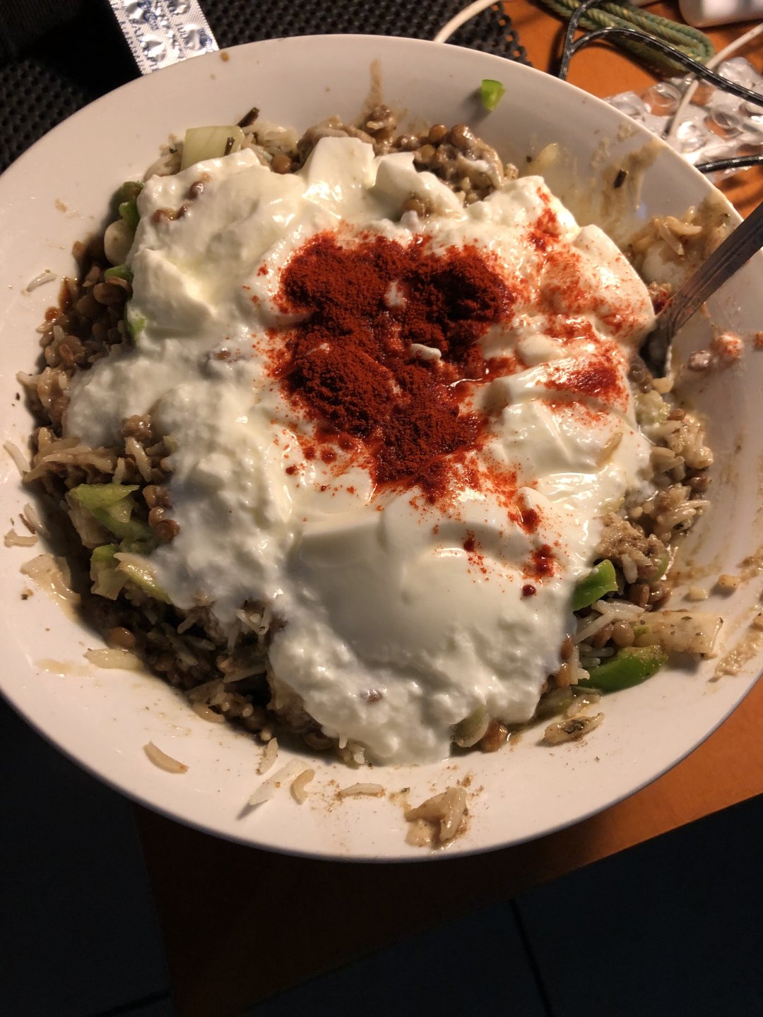 Κρεμμύδι ωμό,δυο μικρές πράσινες πιπεριές ( δεν είχα κάτι άλλο έξτρα)
