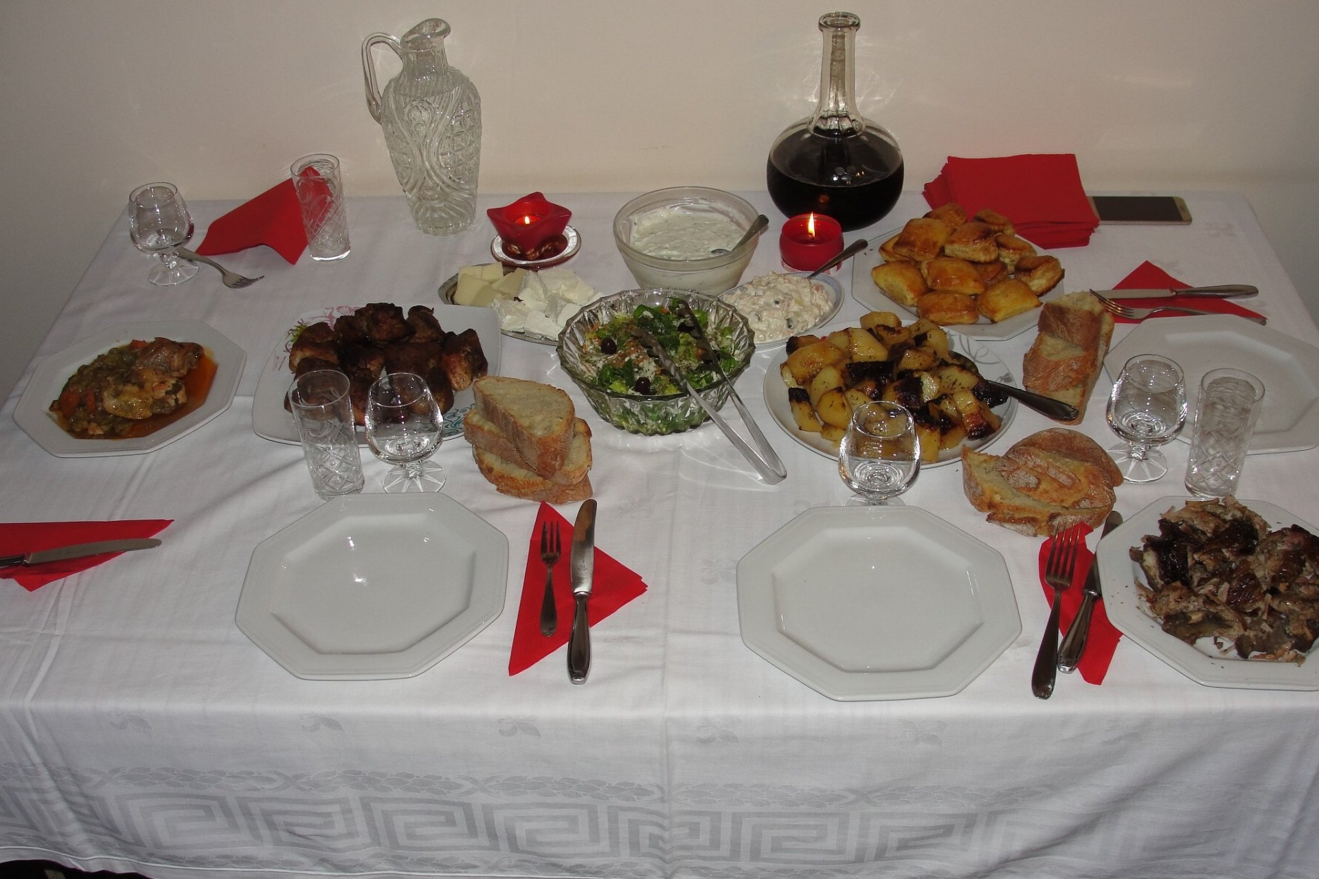 Η απαραίτητη ανάμεικτη σαλάτα, τυριά, τζατζίκι, ρωσική σαλάτα κλπ, κ κρασάκι από φίλο από τα σπάτα ροζέ ημίγλυκο σκέτο άρωμα!!