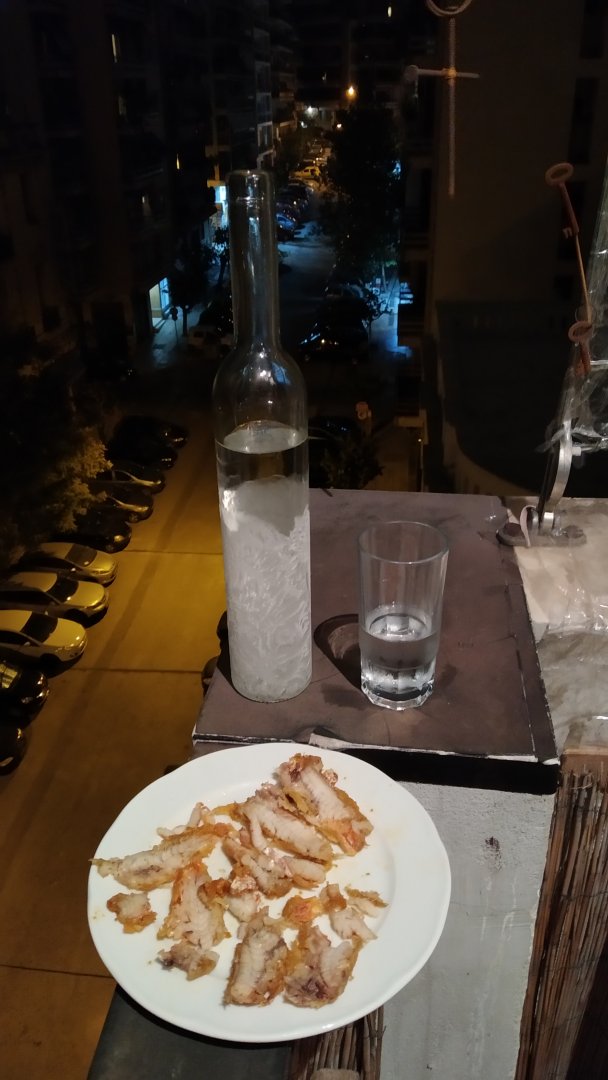 ΥΓ. Απαλυνα κάπως το χτύπημα, με σκουμπρί καπνιστό, γαύρο μαρινάτο, σαρδέλα ψιλοκαυτερή, ελιές, τυριά διάφορα, και τέλος πάντων με διάφορα τέτοια τζιμπράγκαλα.