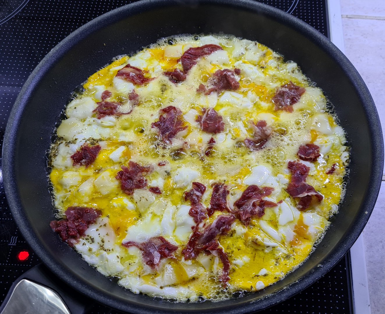 Αυγουλάκια με γίδινο τυρί Κρήτης και παστουρμά. Σλουρπ.