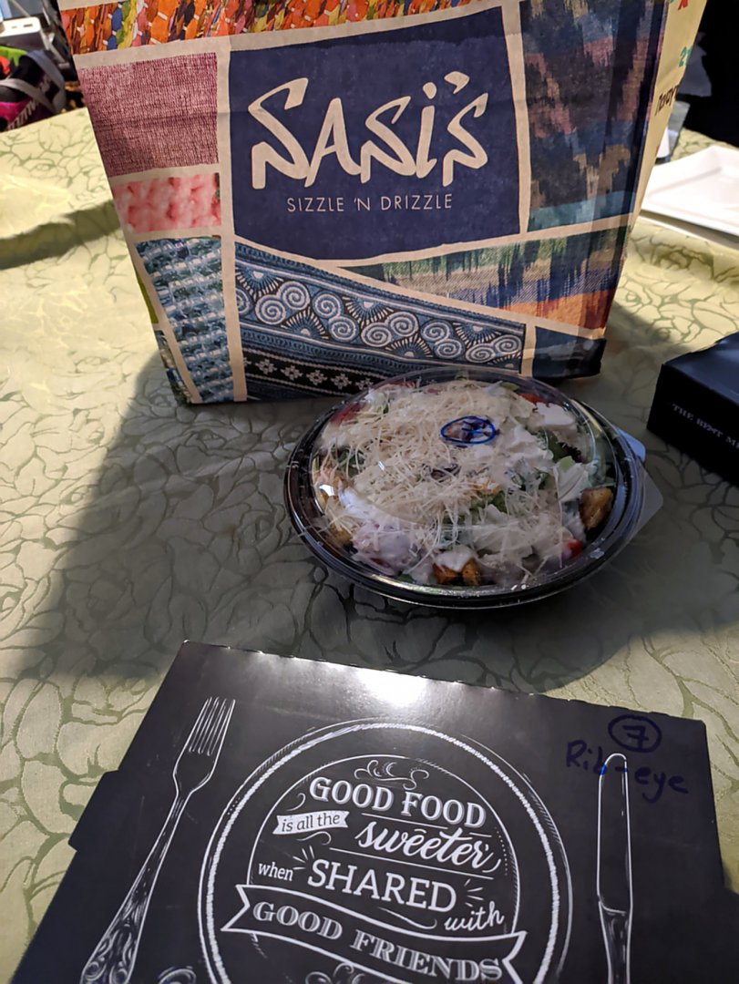 Μόνο take away να φανταστώ;Σήμερα είχε Sasi's (το αδερφάκι του Κozi's). Rib-eye και σαλάτα.