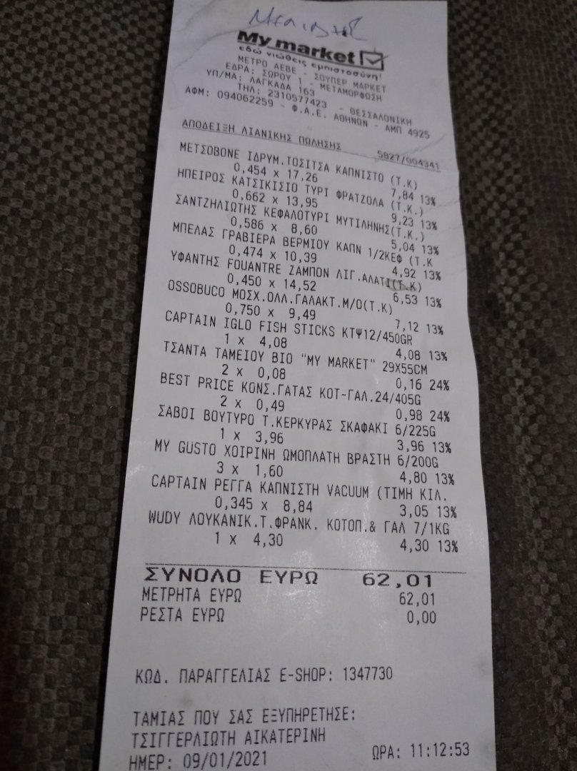 Η τελευταία μου παραγγελία από το S/M που μου έφεραν delivery.