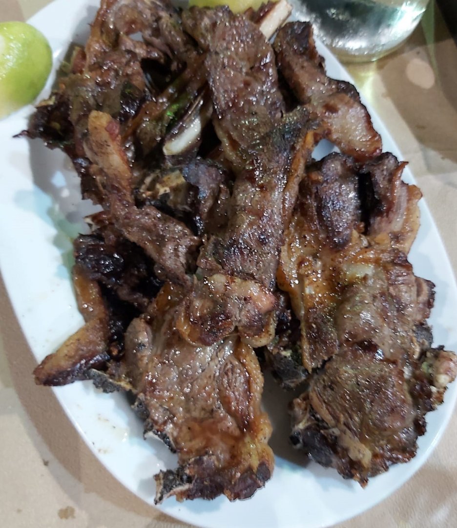 Πήγα στο διπλανό χωριό, βρήκα το χασάπικο και μου έκοψε μία σπαλομπριζόλα 1,5 κιλό και 5 μικρές χοιρινές. Άναψα το ξένο BBQ και οι αρακάδες μπήκαν στο ψυγείο για άλλη μέρα (θα τους πετάξω στα κρυφά γιατί βγάζουν μυρωδιές).