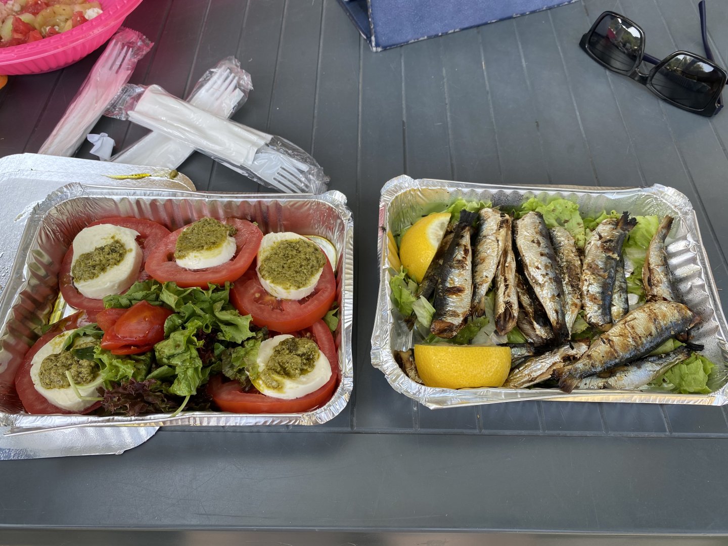Το πρώτο είναι ψητά λαχανικά σκεπασμένα με ταλαγάνι.
