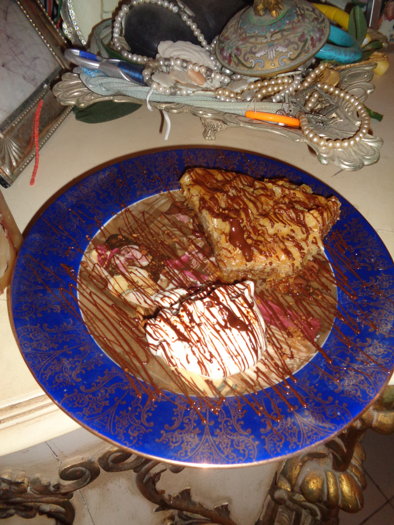 Η δε πρόταση σερβιρίσματος περιλαμβάνει γιαούρτι,παγωτό ή εναλλακτικά creme fraiche,ραβδώσεις από σιρόπι σοκολάτας και διάσπαρτες νιφάδες από κόκκους στιγμιαίου καφέ με άρωμα φουντουκιού...