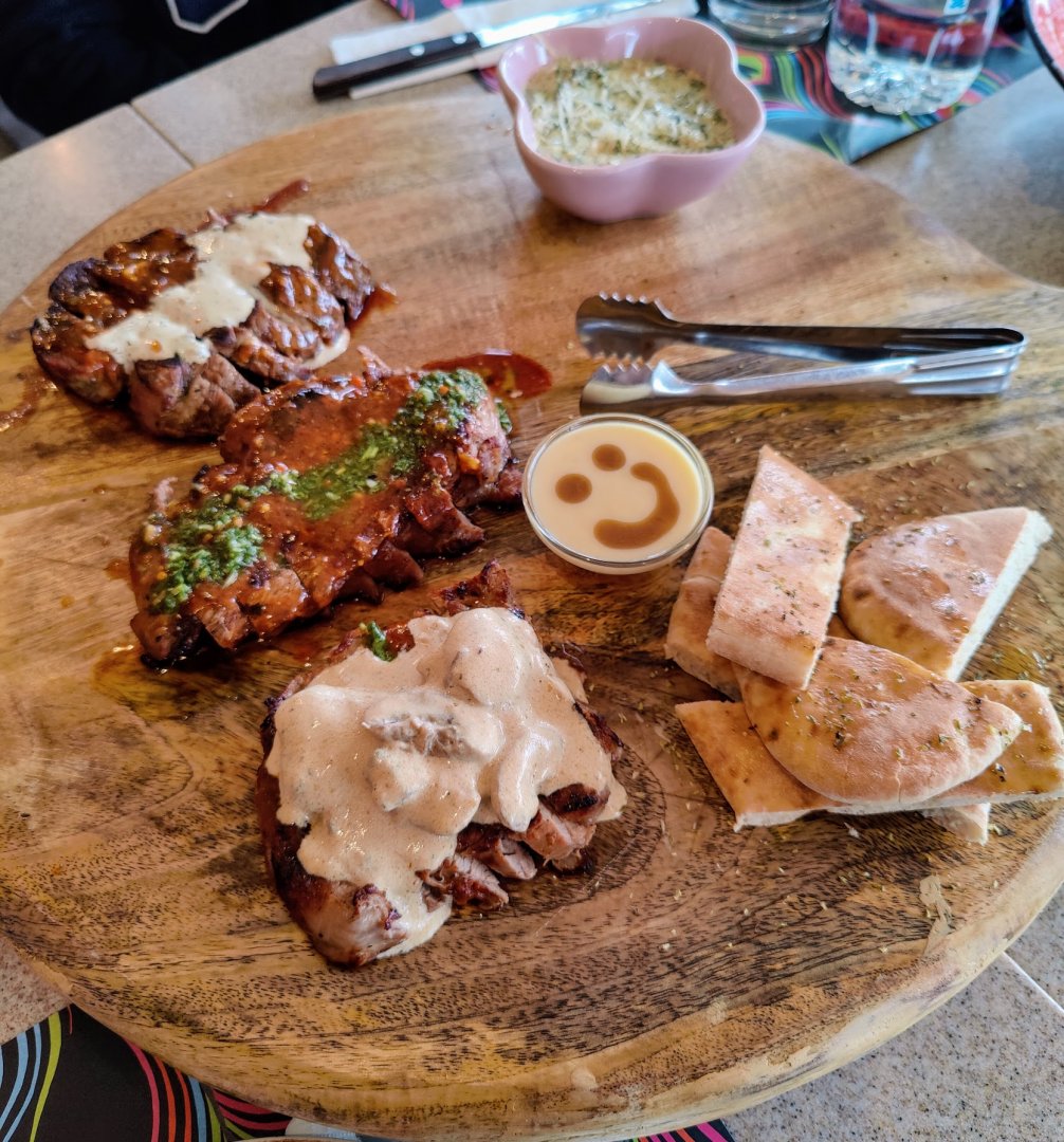 Γράψε και πού είναι μην τη πατήσει και κάνας άλλοςΣαλάτα σπέσιαλ και ribeye, picanha, tenderloin σε ποικιλία.